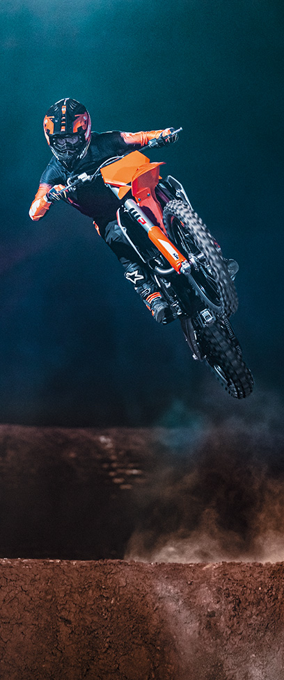 Con más de una década compitiendo -y ganando- en el nivel más alto del motocross profesional, la KTM 350 SX-F hace tiempo que se ha despojado de su etiqueta de subestimada y ha demostrado ser una digna adversaria. Con una potencia utilizable en toda la gama de revoluciones, una estabilidad inquebrantable a alta velocidad y unas verdaderas credenciales de campeona, la KTM 350 SX-F 2023 sigue estando READY TO RACE.