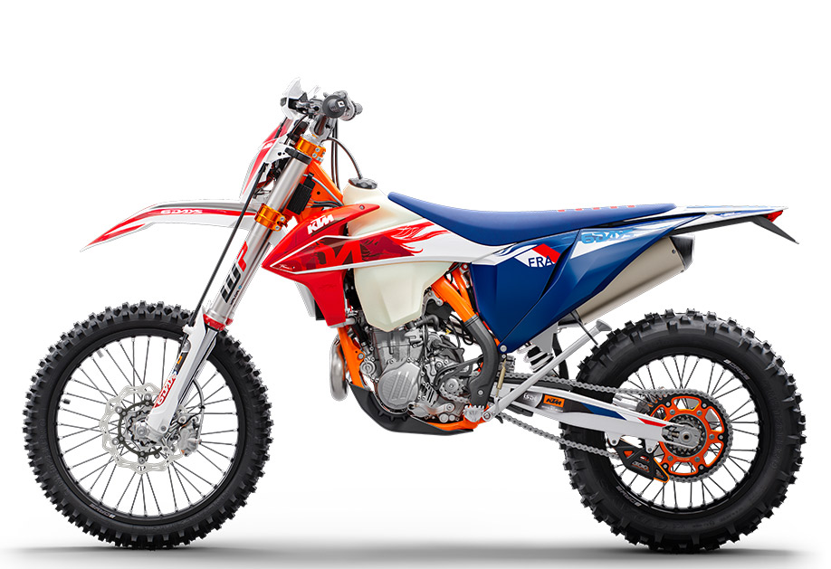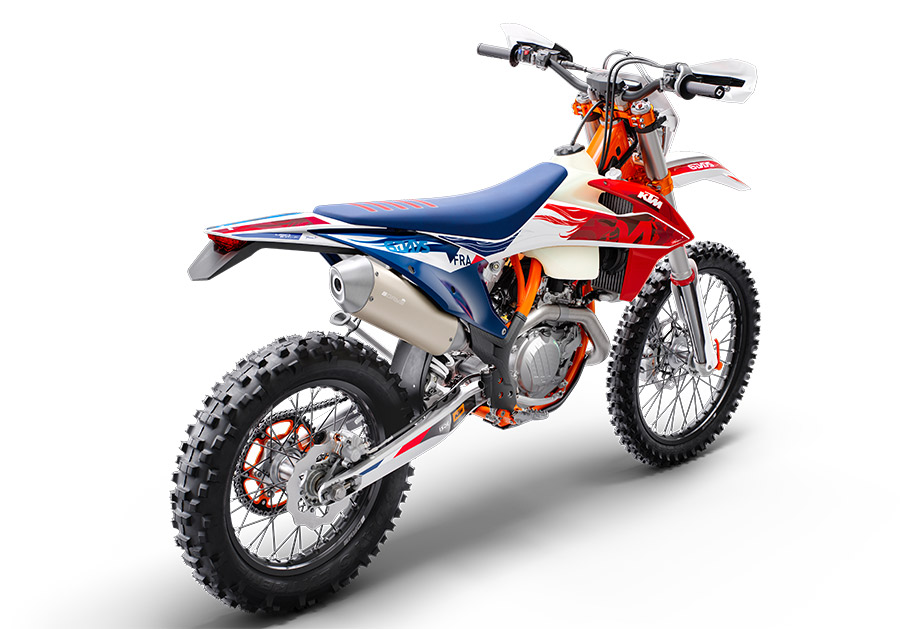 La KTM EXC 450-F SIX DAYS es desde hace tiempo el arma a batir entre las 4 tiempos de gran cilindrada. Una gran potencia, una agilidad inigualable y montañas de par motor sitúan a esta arma de enduro READY TO RACE en cabeza de cualquier batalla offroad. Para 2023, mantiene su pedigrí ganador de campeonatos, las mejores suspensiones de su categoría y el típico estilo KTM SIX DAYS.
