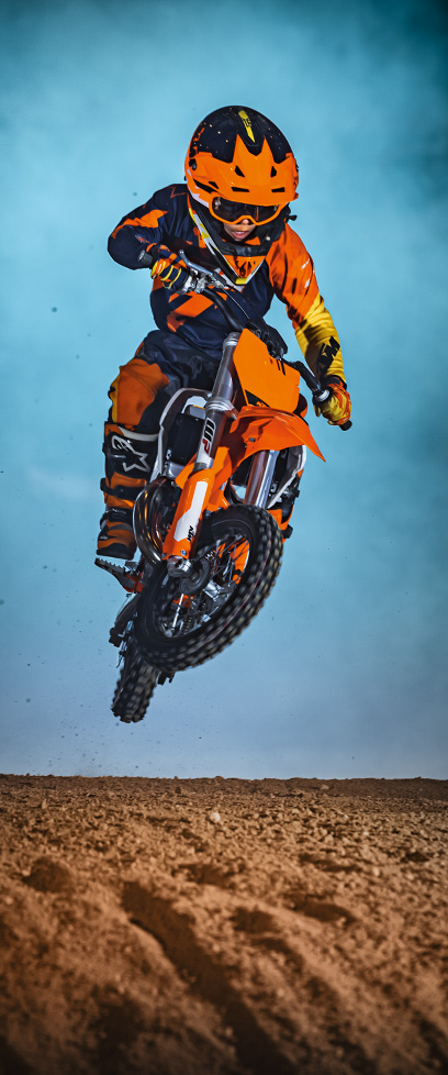 La KTM 50 SX 2023 es una auténtica máquina de motocross READY TO RACE. Se trata de una genuina motocicleta offroad qué, al igual que sus hermanas mayores, está fabricada con componentes de máxima calidad, conocimientos desarrollados en competición y un meticuloso trabajo de desarrollo. No hace falta decir que la KTM 50 SX es la única opción para entrar en el mundo del MX.